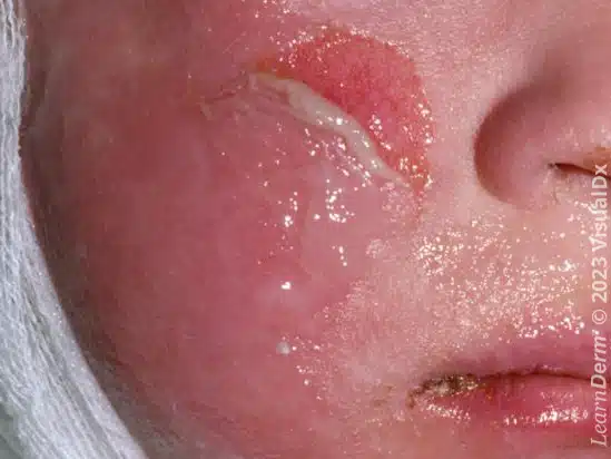 | Erosiones | Áreas con pérdida de la solución de la piel. | ![]() |