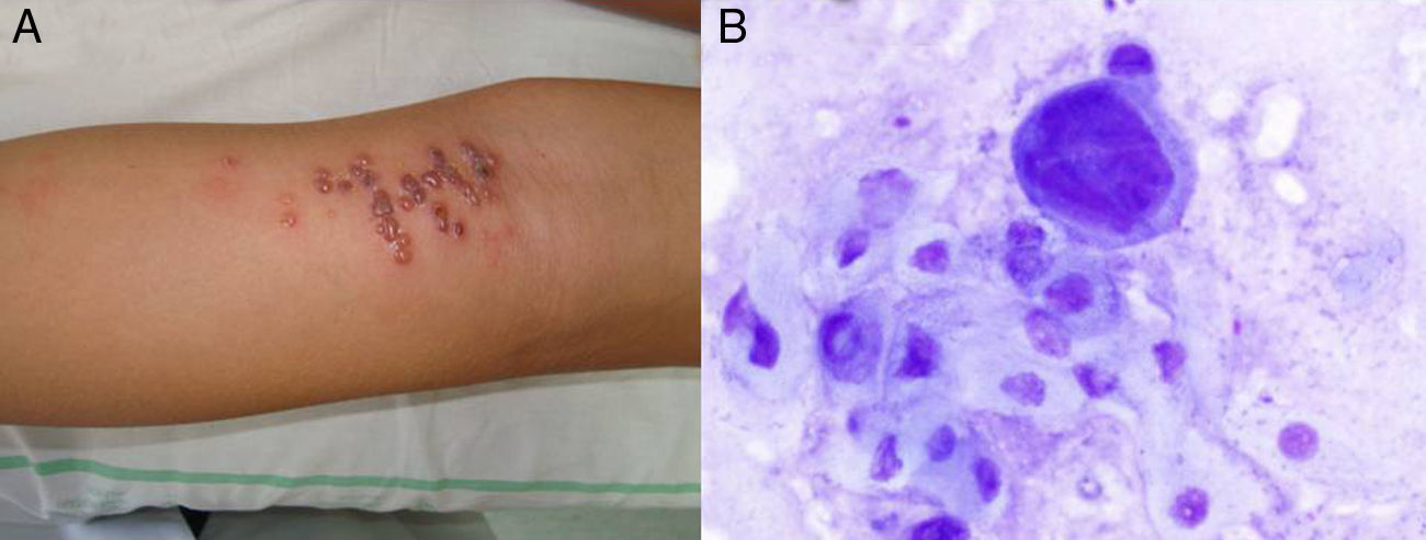 Se trata de una prueba destinada a conocer la existencia de virus del herpes (simple o zoster). Para ello se rasca de ampolla o vesícula y se observa la muestra obtenida bajo tinción de Giemsa