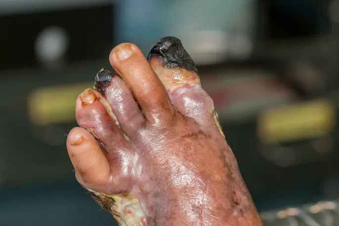 | Gangrena | Necrosis de la piel tanto húmeda como seca | ![]() |