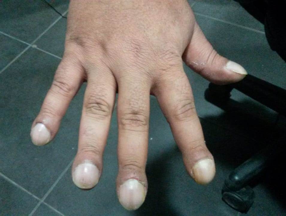| Acropaquia | Enderezamiento del ángulo normal de la uña y reblandecimiento de ésta secundaria a enfermedades pulmonares e hipóxia crónica | ![]() |